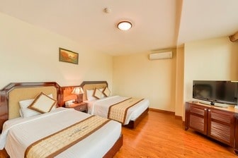 Phòng hạng sang được thiết kế rộng rãi (30m2), tọa lạc trên tầng cao, hướng ra thị trấn du lịch Cát Bà, cảnh vịnh biển, gồm 1 giường đôi và 1 giường đơn phù hợp cho gia đình